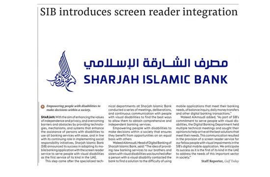 SIB the 1st bank in the UAE introduce Screen Reader serve people with visual disabilities